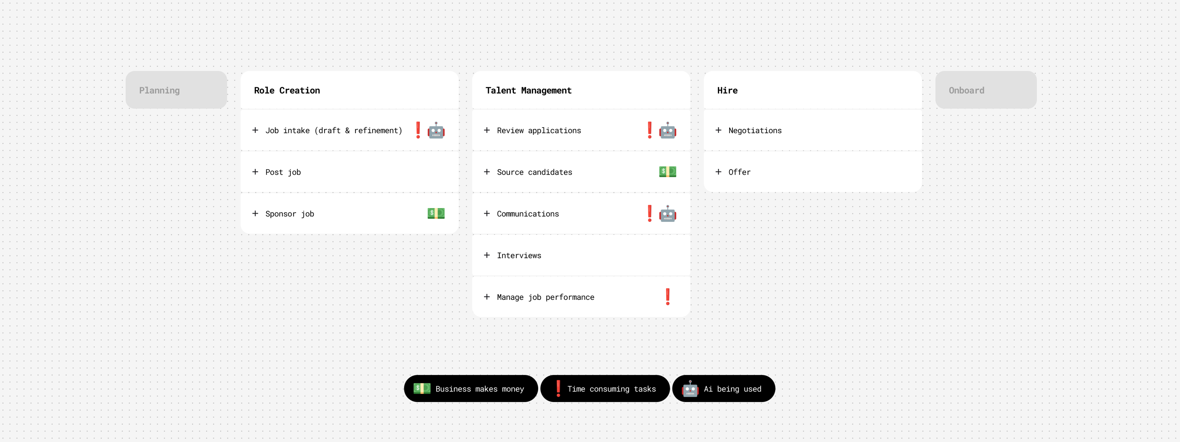 Feedback highlighted strong appetite for AI support on “grunt-work” tasks—fixing job postings, rewriting descriptions, managing sponsorships and billing. These were the same areas I had initially championed and became priorities for subsequent phases.